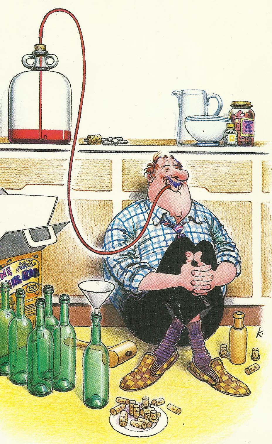 Si decide di scendere prima in cantina per un assaggio, i bicchieri di vetro potrebbero rompersi, la moglie avrebbe da dire, così di soppiatto si afferrano due caraffette di plastica dei nipotini, stabilendo che si possono usare ugualmente, anche con le loro buffe immagini di animaletti.