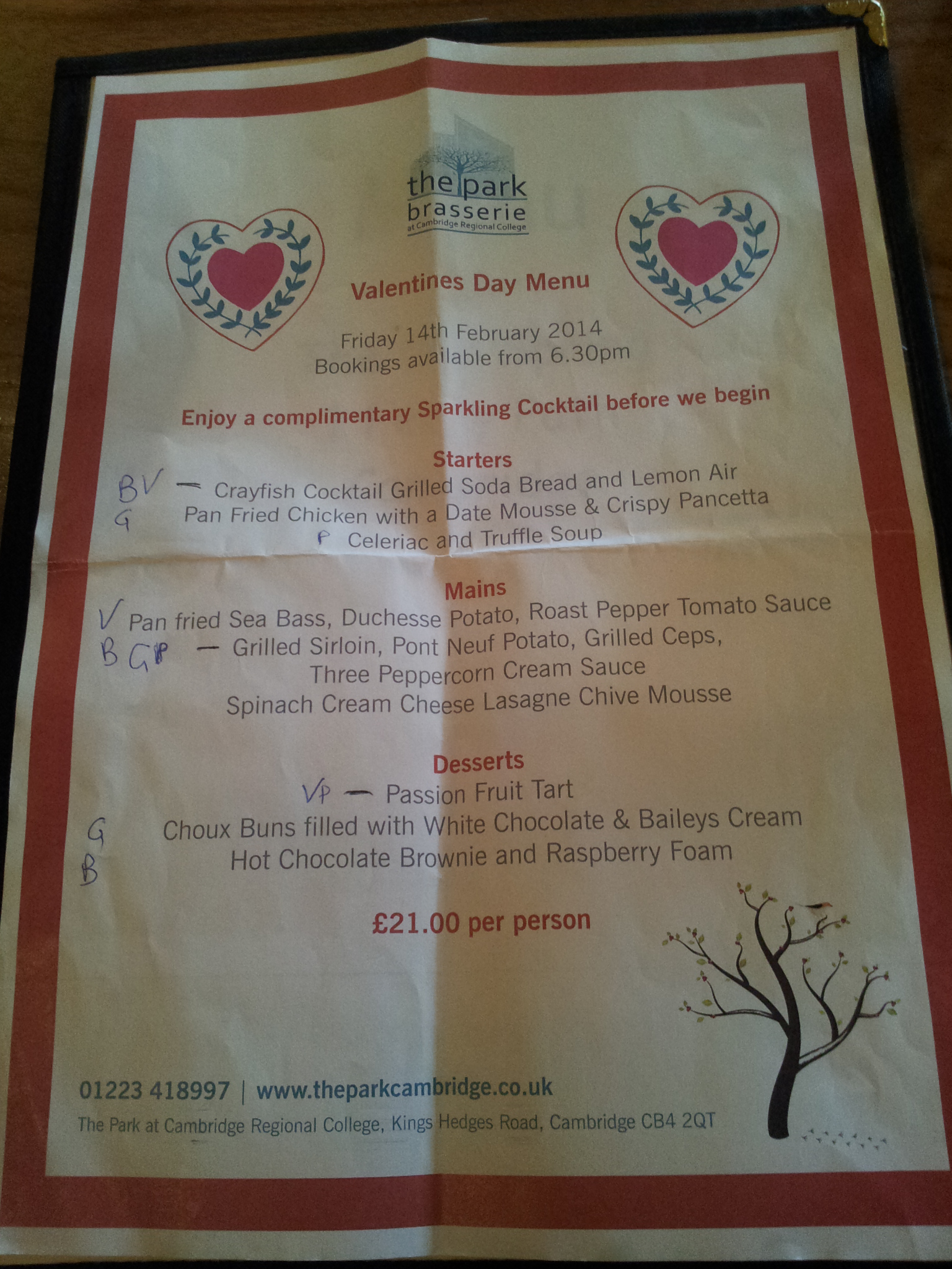 All’ingresso era stato distribuito il raffinato menù, con rossi cuoricini sparsi,loro sono stati fatti accomodare in un salone con palloncini rossi e una dozzina di tavoli addobbati festosamente con stoviglie e fine cristalleria, sulle candide tovaglie erano sparsi dei minuscoli cuoricini.